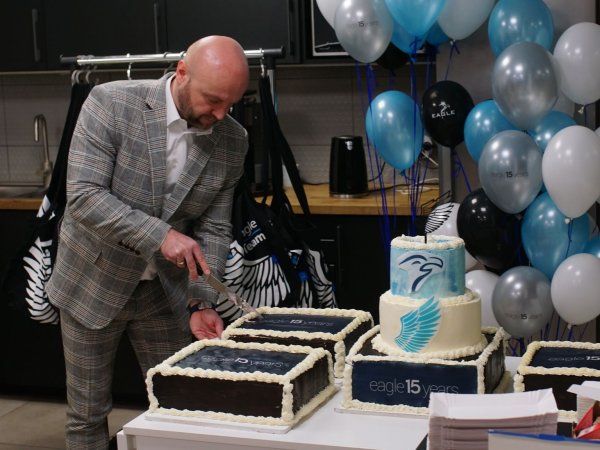 På 15 år er Eagle gået fra at være et mindre firma, startet af en gruppe venner, til at være et globalt foretagende med tilstedeværelse på fire kontinenter, fremhæver den polske virksomhed, der bød på kage til de ansatte på 15 års-fødselsdagen, 1. marts.
