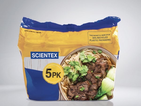 Der er nærmere bestemt tale om emballage til nudler fremstillet med 30 procent certificeret Post Consumer Recycled-plastindhold, og som er blevet lanceret i større detailbutikker i Malaysia.