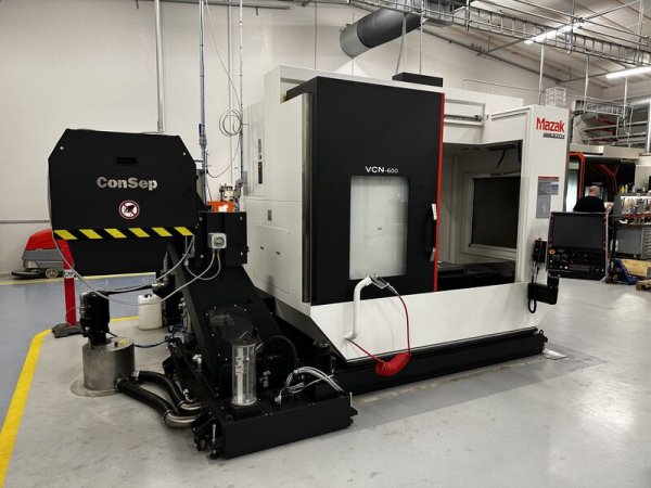 Mazak VCN-600-bearbejdningscentret er forberedt til emnehåndtering med robot.